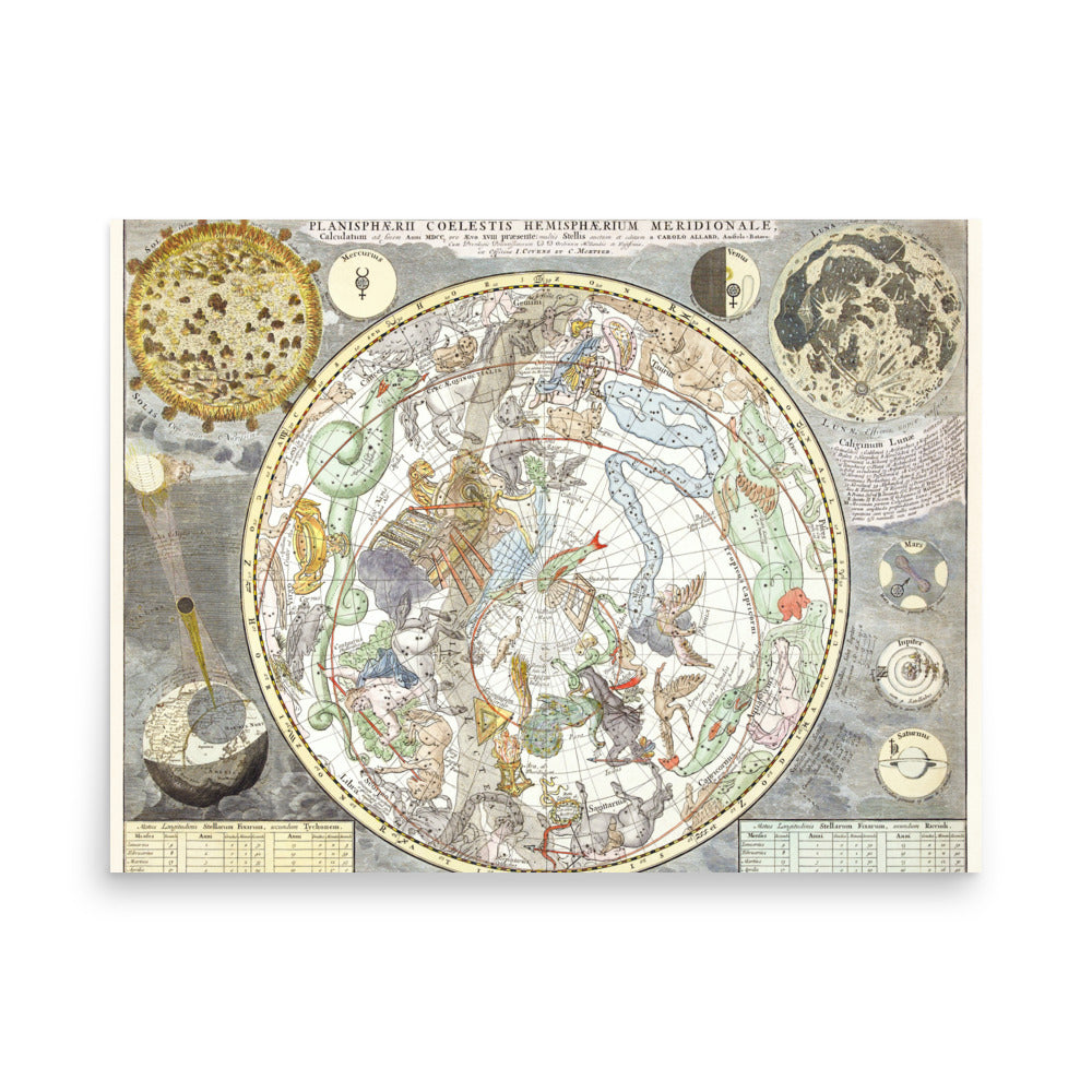 Sterrenkaart van de zuidelijke sterrenhemel (1772) - Premium Poster