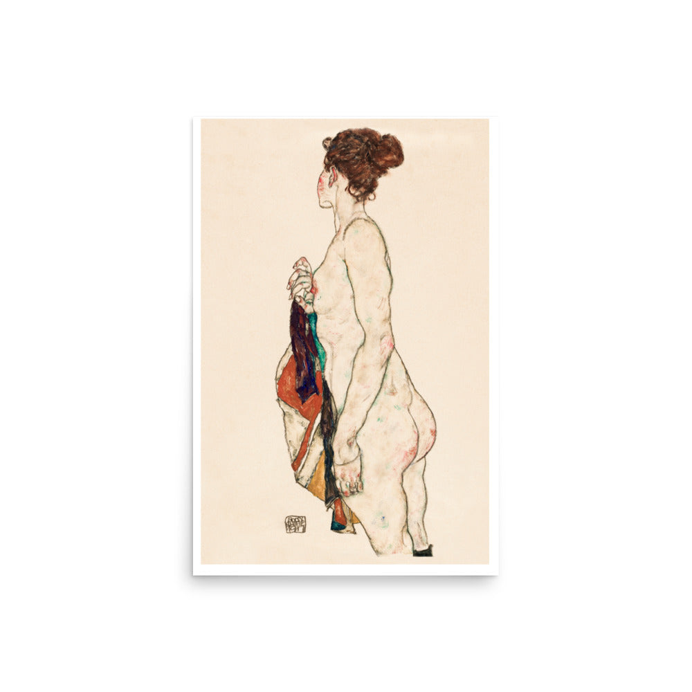 Standing Nude with Orange Drapery by Egon Schiele- Premium Poster